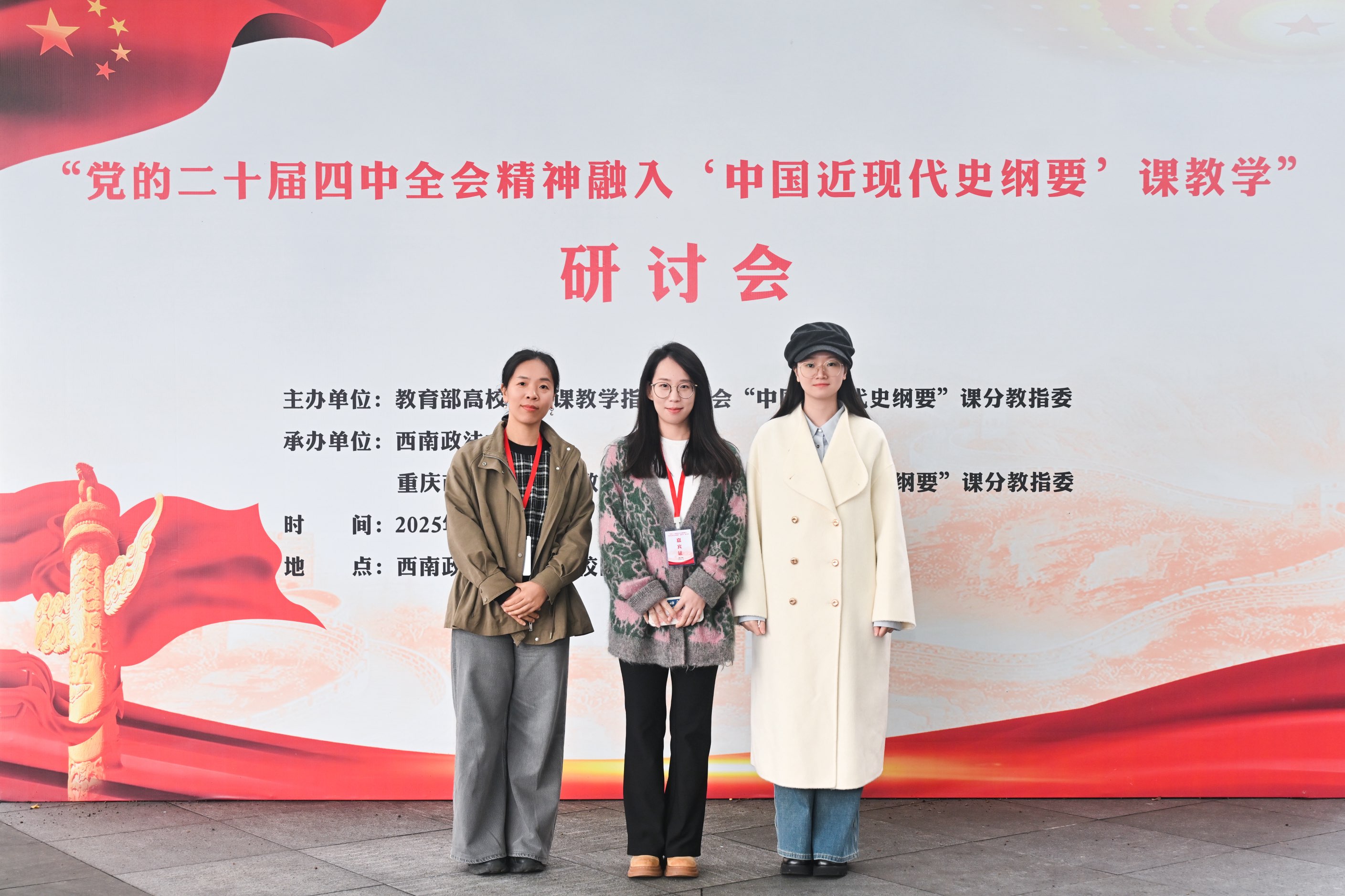 2025年11月2日,聚焦“二十届四中全会精神融入中国近现代史纲要课(以下简称‘纲要’课)教学”的专题研讨会在西南政法大学顺利召开,来自高校马克思主义学院的专家学者、一线授课教师齐聚一堂,围绕全会精神与“纲要”课的内在契合点、教学融入路径及实践创新展开深入研讨,为提升课程育人实效凝聚共识、明确方向。我校由马克思主义学院副院长张沙沙带队,纲要教研室主任彭伟以及纲要课程骨干教师唐悦一同前往参会。
