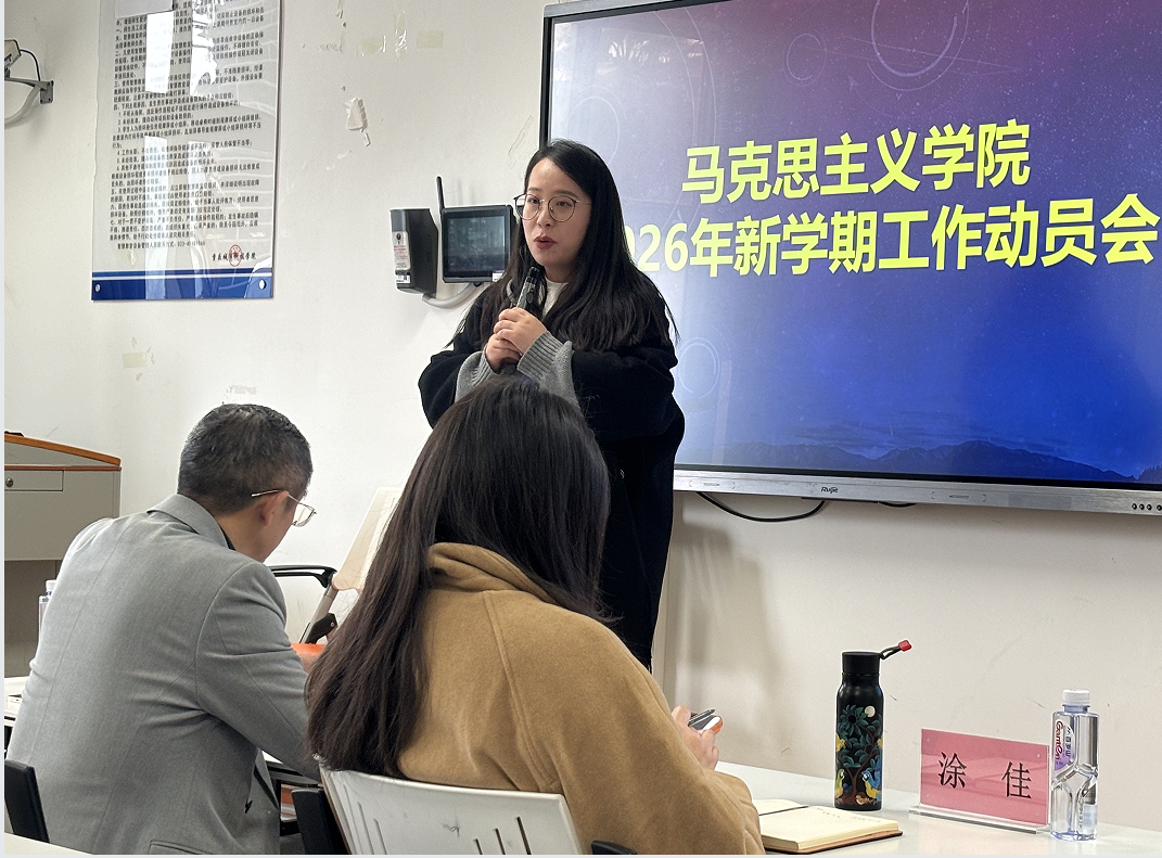 2026年2月26日上午,马克思主义学院在主教206召开2026年新学期工作动员会。学院全体教职工参加了会议,会议由副院长张沙沙主持。