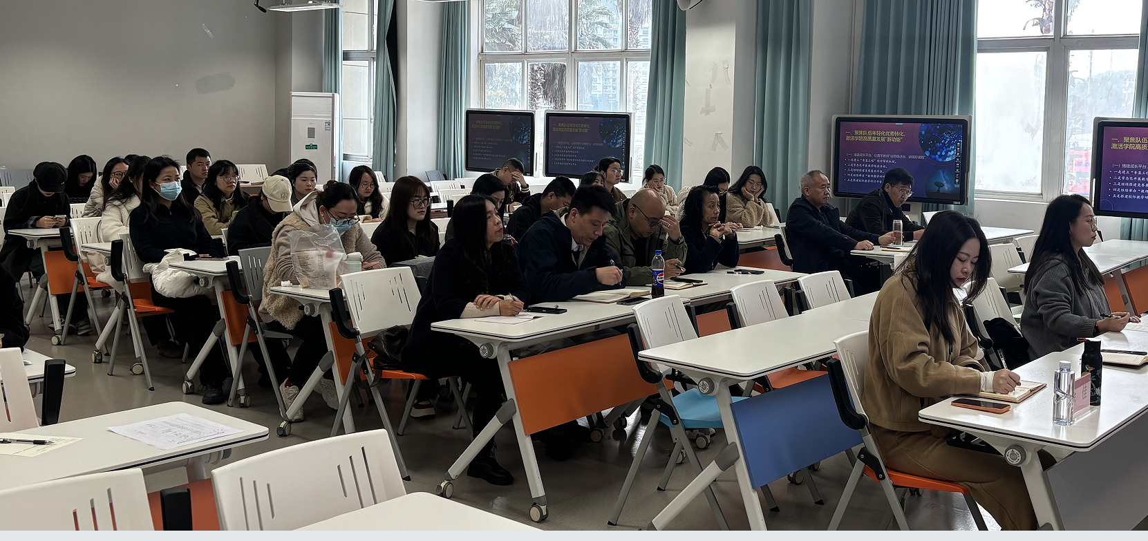段吉福院长在扼要回顾学院2025年工作基础上,对2026学院工作进行了周密部署。他指出,过去一年,学院以“筑基固本谋发展 合楫笃行启新篇”为主题,以习近平新时代中国特色社会主义思想为指导,落实立德树人根本任务,践行“政治建院、人才强院、特色立院、科研兴院”战略,在党建引领、教学质量提升、团队建设、队伍培育、专业建设、学工体系构筑等方面真抓实干,各项事业取得新进展、新成效,为新学期高质量发展奠定坚实基础。2026年学院总体工作思路是:以党建为引领,以教学为中心,以队伍为根本,以专业人才培养为使命,以科研为支撑,以学院文化为纽带,聚焦“队伍年轻化优势转化、公共事务参与度增强、团队凝聚力建设”三大核心任务,统筹推进教学、科研、育人、管理、服务各项工作,全力打造高水平思政队伍,为学校高质量发展提供坚强思想保证和人才支撑。
